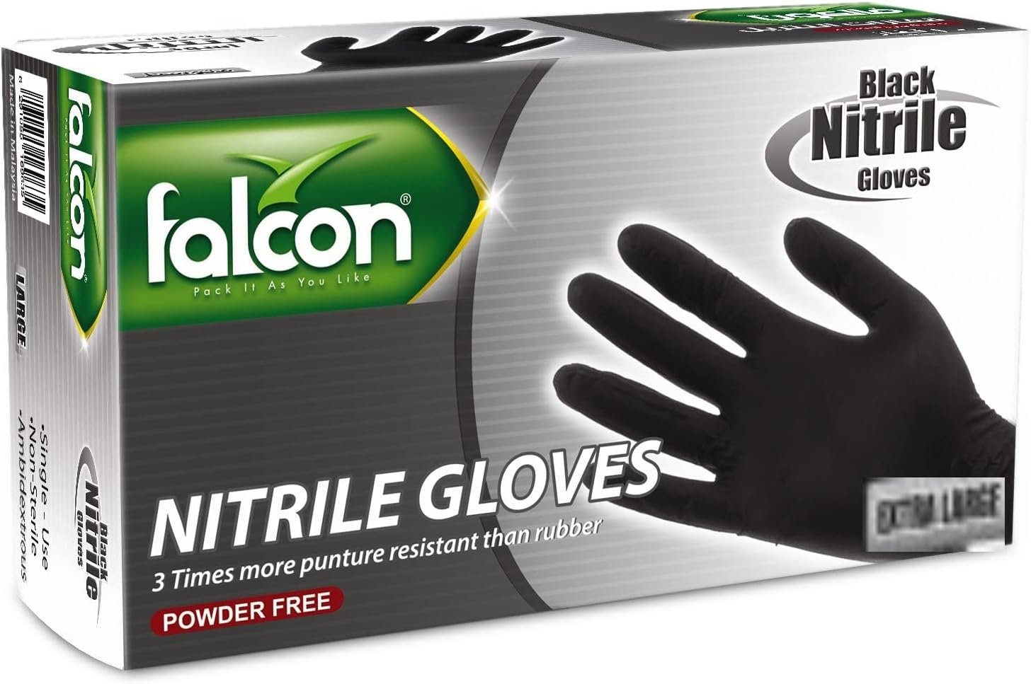 Falcon Nitrile Gloves – Black Powder Free 100 Pieces XL (Extra Large)